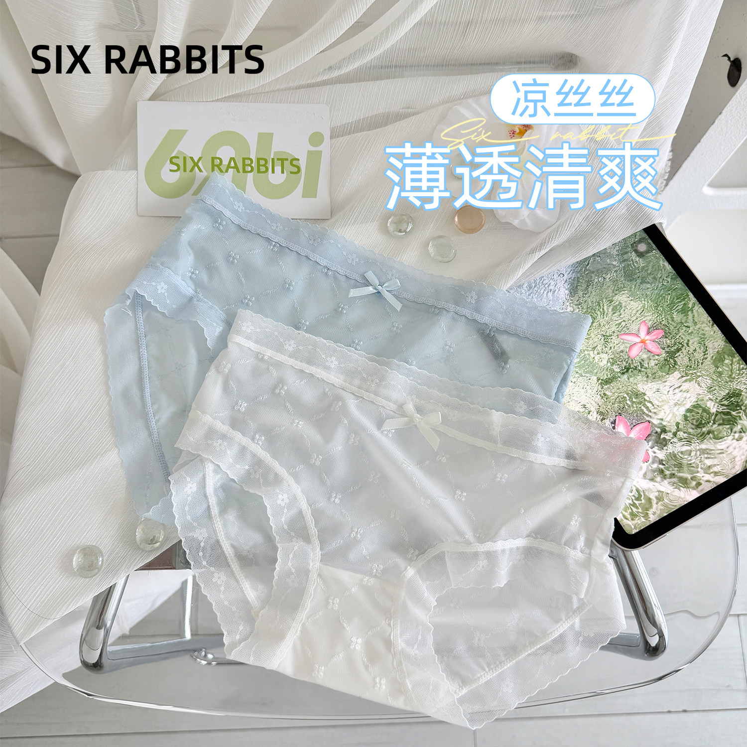 六只兔子薄款内裤女纯棉底裆短裤低腰性感蕾丝高开叉纯欲风三角裤
