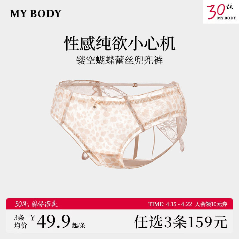3件159|商场同款MYBODY内裤女士纯欲镂空蝴蝶刺绣蕾丝低腰三角裤