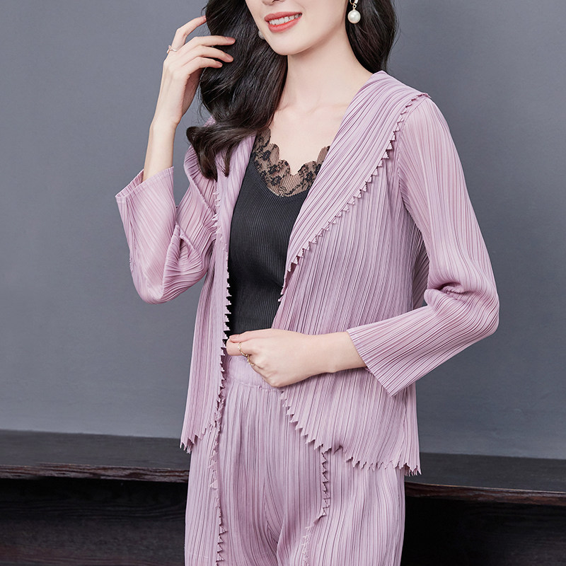 秋季外套女2025新款褶皱翻领飞轮齿条套装时尚气质西装上衣开衫薄