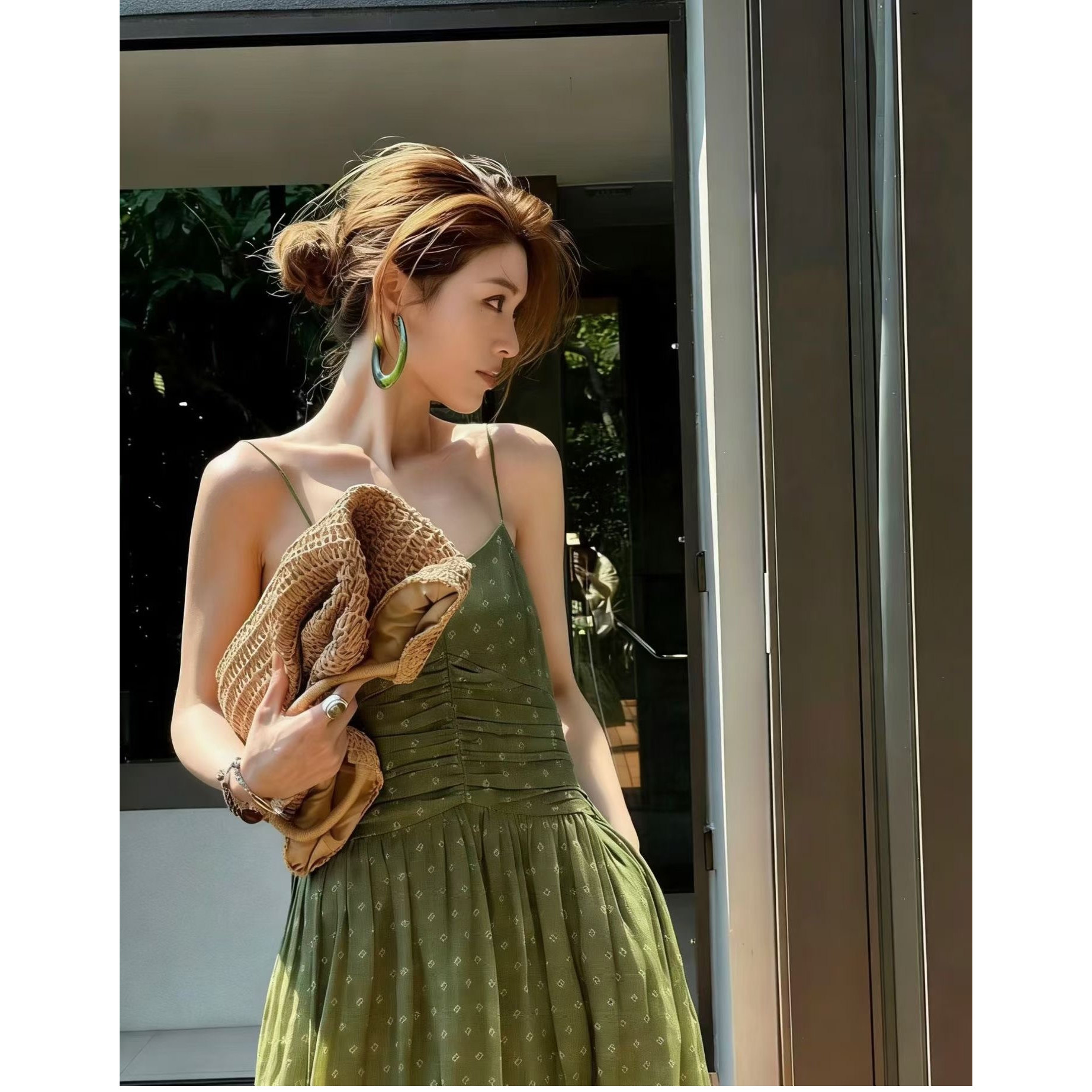 森女部落原创连衣裙女春2026新款法式长裙气质轻lo背带裙绿色裙子