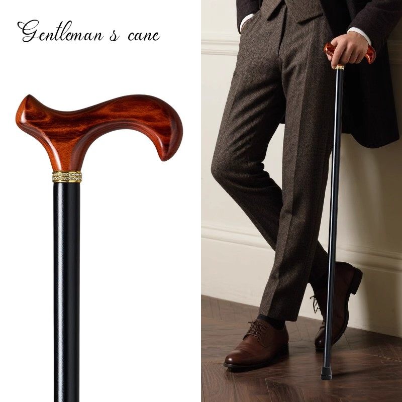 德国绅士实木手杖复古弯钩拐棍英伦风镶钻黑色榉木拐杖父亲节礼物