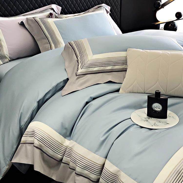 纯色简约现代北欧风100支长绒棉四件套纯棉贡缎被套全棉男士商务