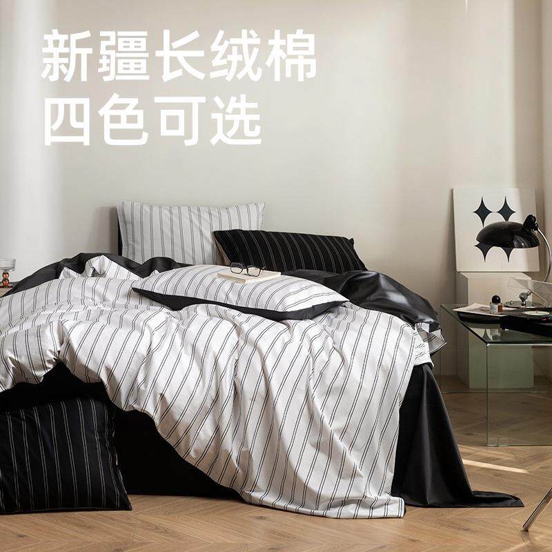 男士条纹商务风100支全棉长绒棉四件套纯棉条纹被套床单床笠床品A