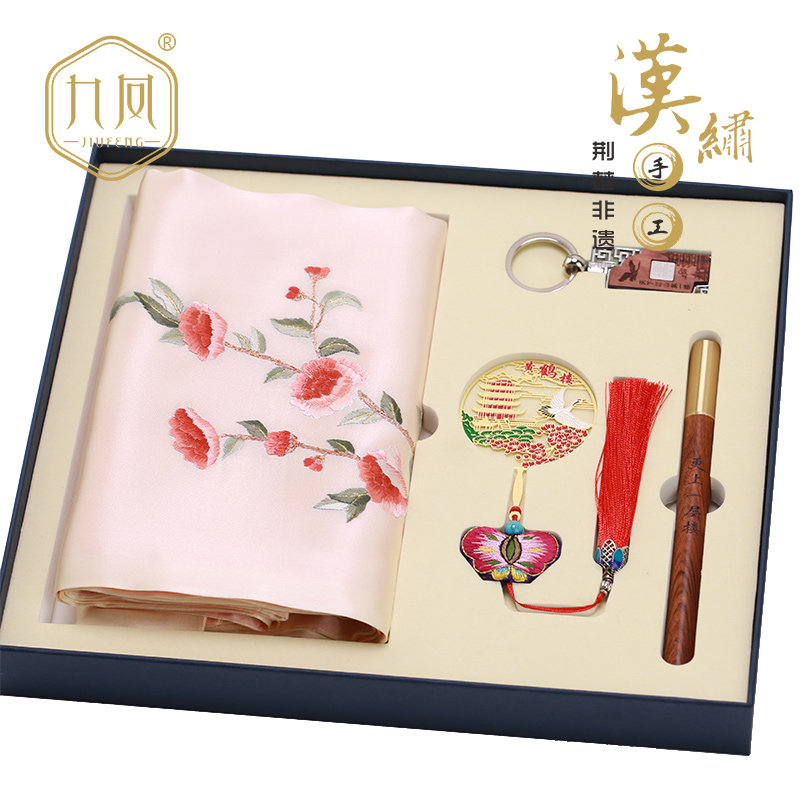 国风苏绣礼品套装刺绣真丝丝巾四件套节日出国商务礼品送老师老外