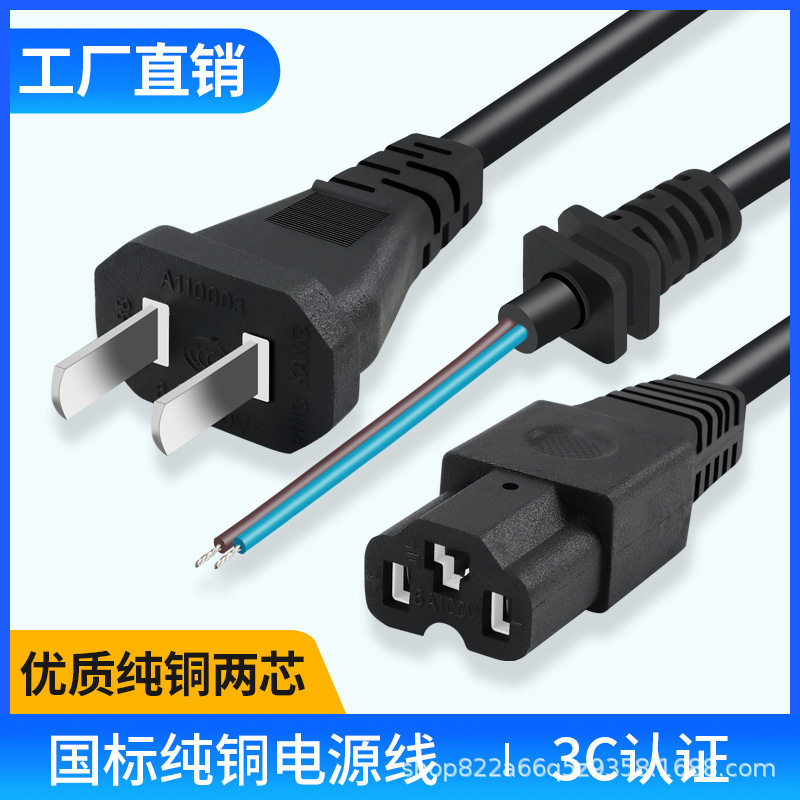 适用于雅迪爱玛电动车充电器电源线两插插头品字头T孔国标输出线