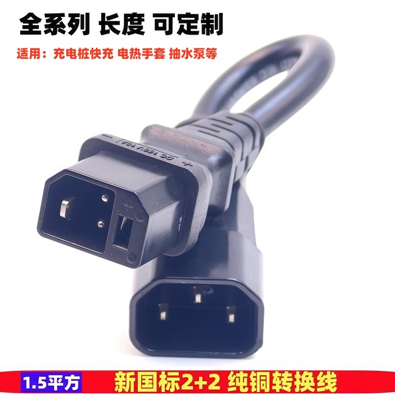 适用新国标雅迪爱玛电动车充电器插头转换头充电桩水泵品字转接线