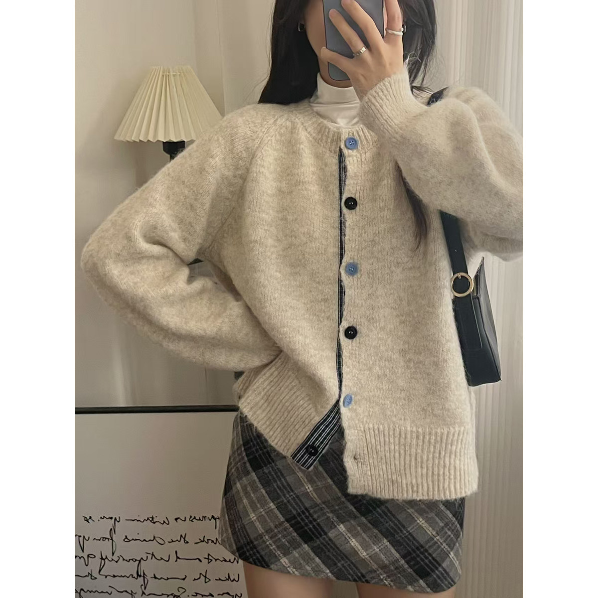 ziziFei秋冬新款温柔软糯慵懒风美式复古蝴蝶毛绒毛衣开衫外套女