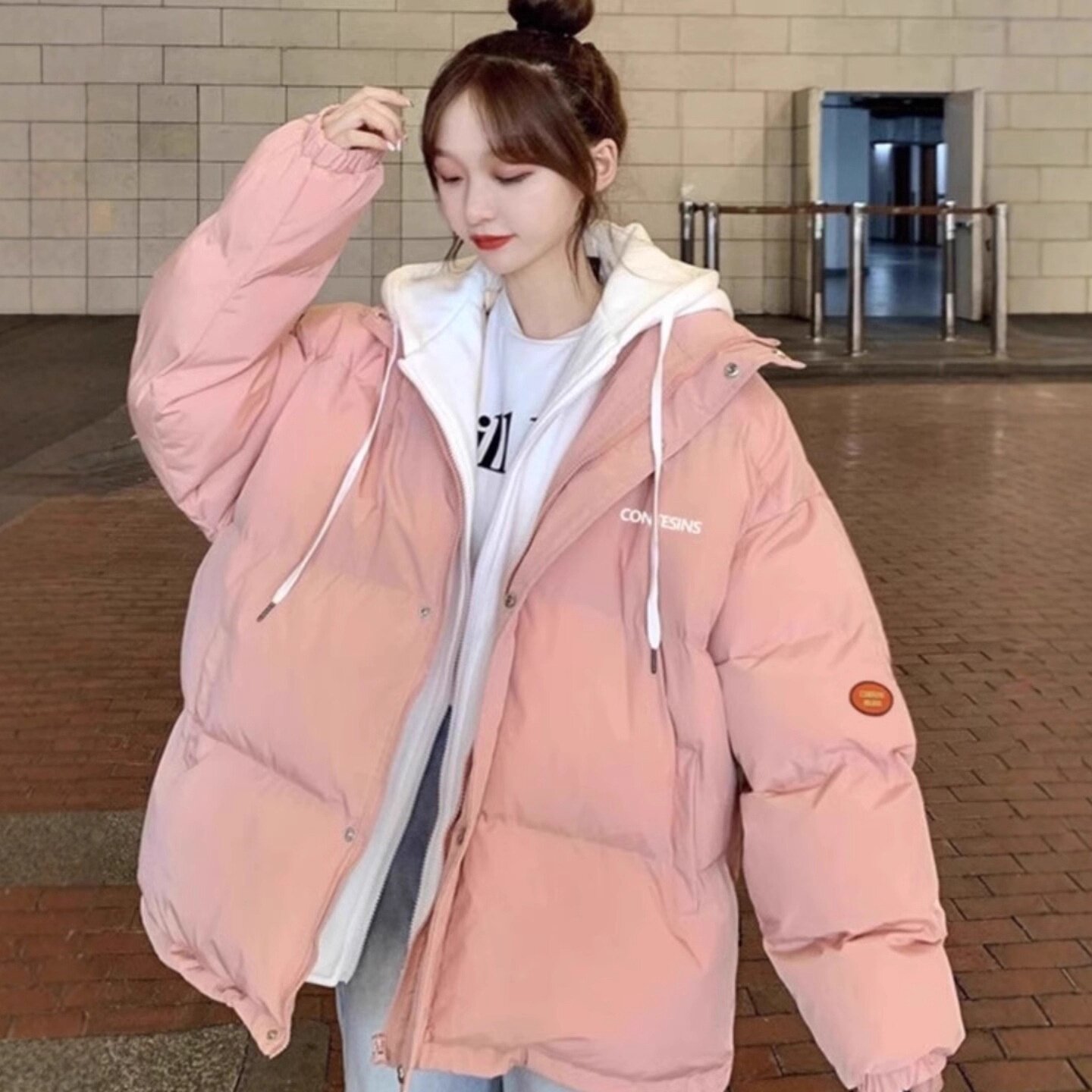 粉色棉衣棉服女短款2025新款冬季韩版加厚少女外套假两件羽绒棉袄