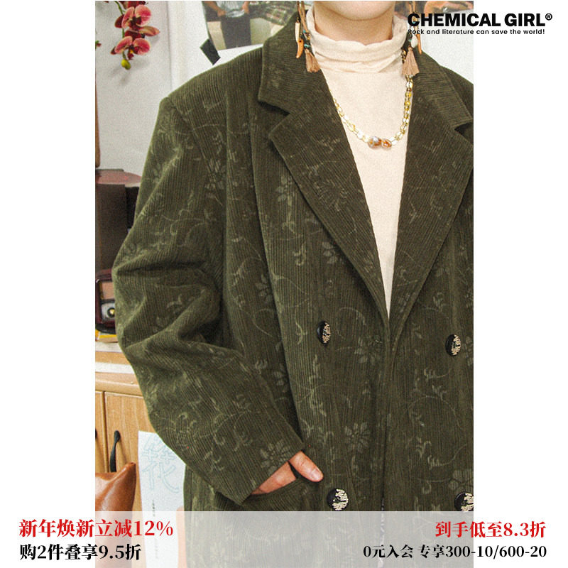 化学少女「草木神探」休闲复古西装灯芯绒设计感西装外套女秋冬款