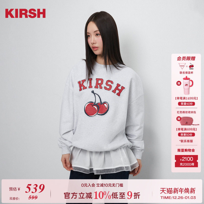 樱桃KIRSH 贴布绣圆领卫衣女套头2025春秋韩版宽松休闲少女外套