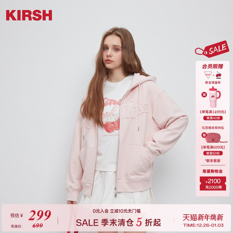 樱桃KIRSH 贴布绣连帽开衫卫衣女2025春秋粉色宽松休闲少女外套