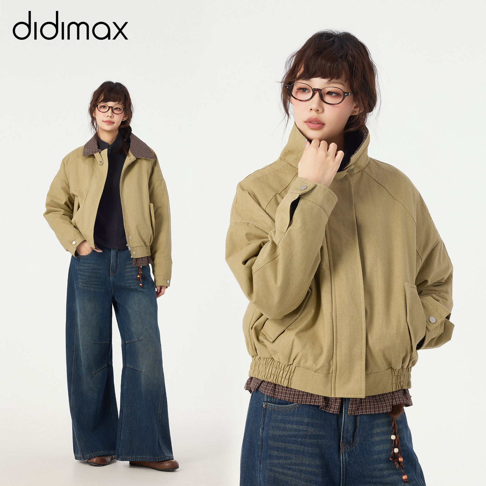 didimax冬季新款卡其色鸭绒羽绒服 格子拼接花边少女外套W36441
