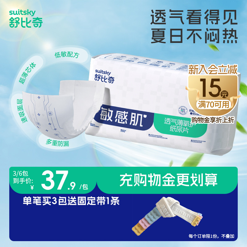 舒比奇透气薄纸尿片S/M/L/XL码婴儿尿不湿无腰贴【新老随机发】