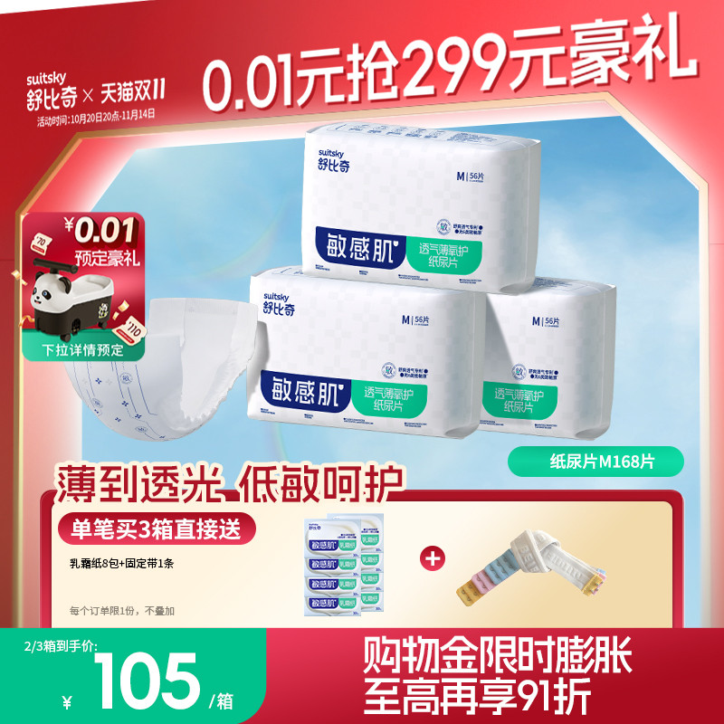 舒比奇纸尿片M168片透气薄氧护宝宝秋冬推荐宝宝婴儿尿不湿纸尿布