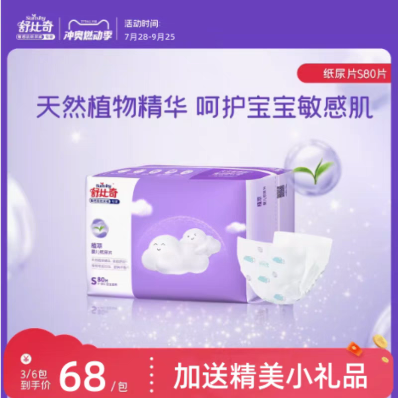 舒比奇植萃敏感肌纸尿片SMLXL男女宝夏季通用尿不湿超薄透气吸水