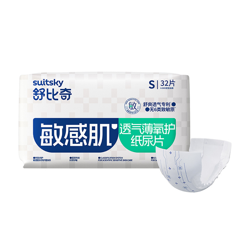 舒比奇透气薄氧护纸尿片S码32片新生婴儿超薄尿不湿无腰贴纸尿裤