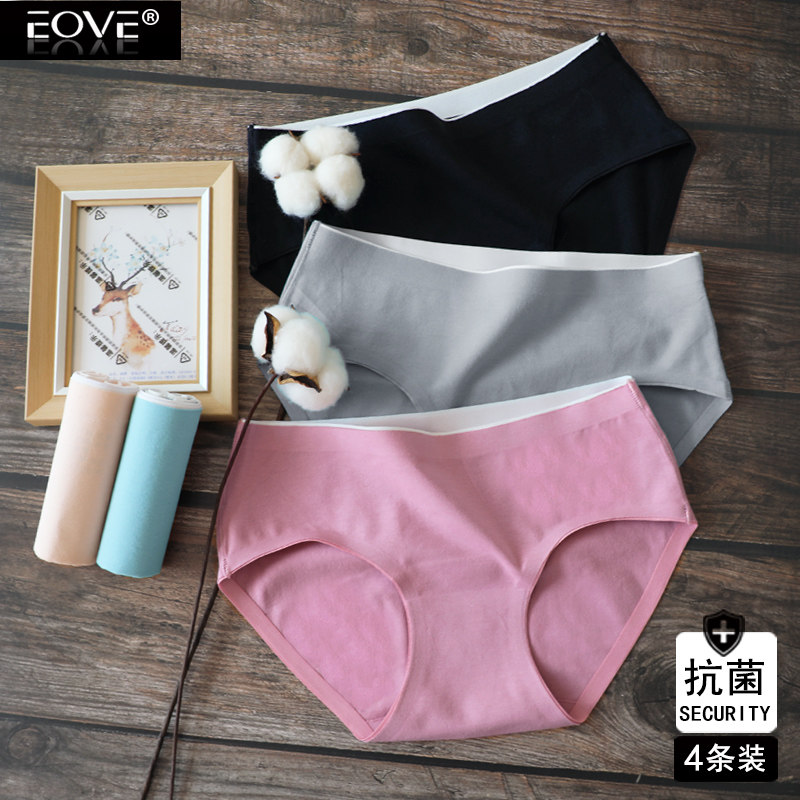 [2/4]宜而爽棉氨中腰内裤女 轻薄无痕纯色不夹臀裆纯棉抑菌三角裤