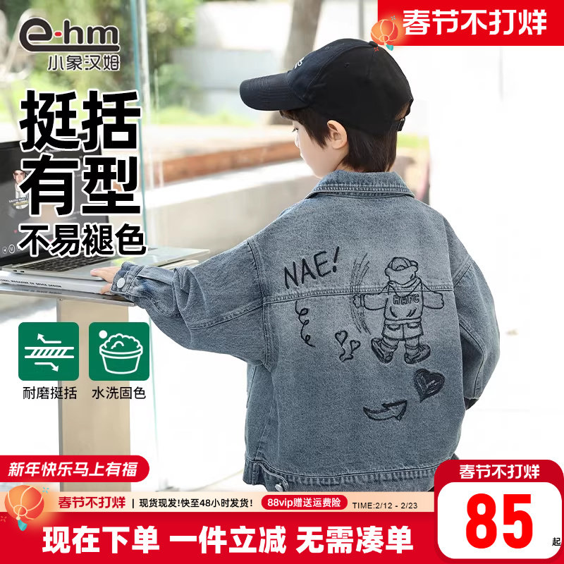 小象汉姆童装男童春装薄外套儿童牛仔衣2026新款春款开衫洋气潮