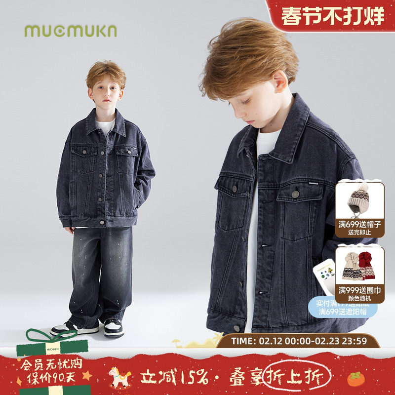暮晨家新款冬装2025男童加棉牛仔外套夹克中小童加厚牛角扣棉袄