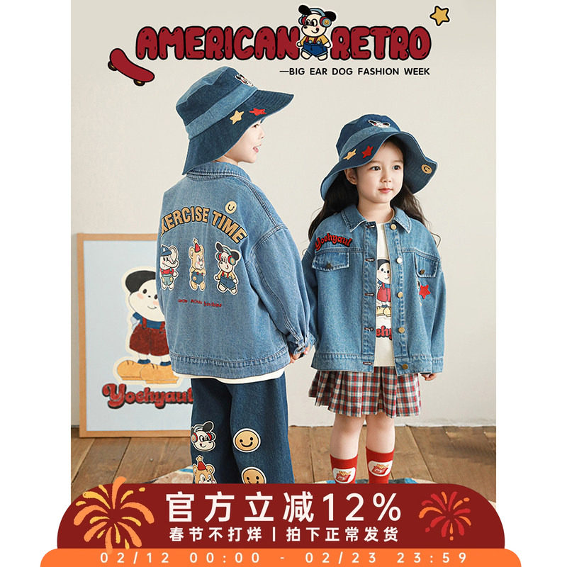 幼悠男童潮酷小狗翻领简洁牛仔外套春季新款宽松舒适儿童痞帅春装