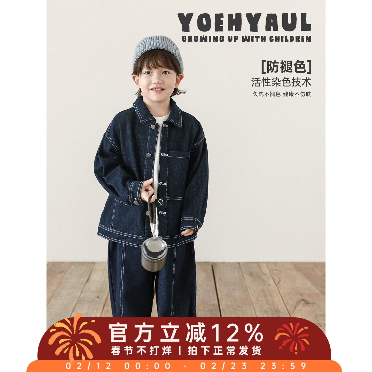 幼悠男童2026春秋新款长袖不易褪色牛仔外套时髦直筒牛仔裤套装潮