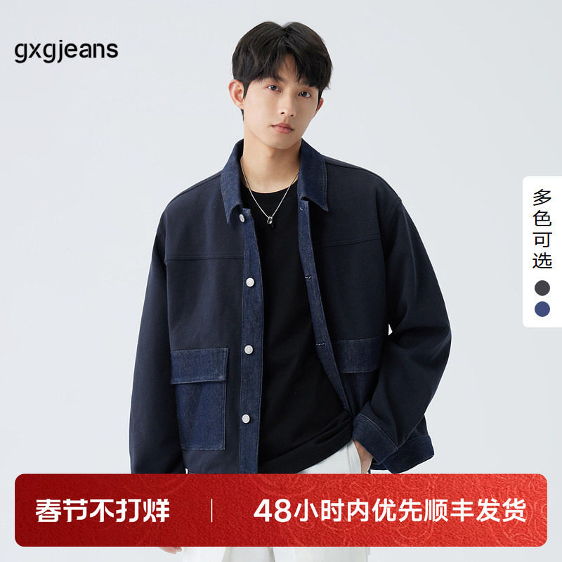 gxgjeans男装 拼接设计时尚潮流翻领牛仔夹克外套男士 26年春热卖