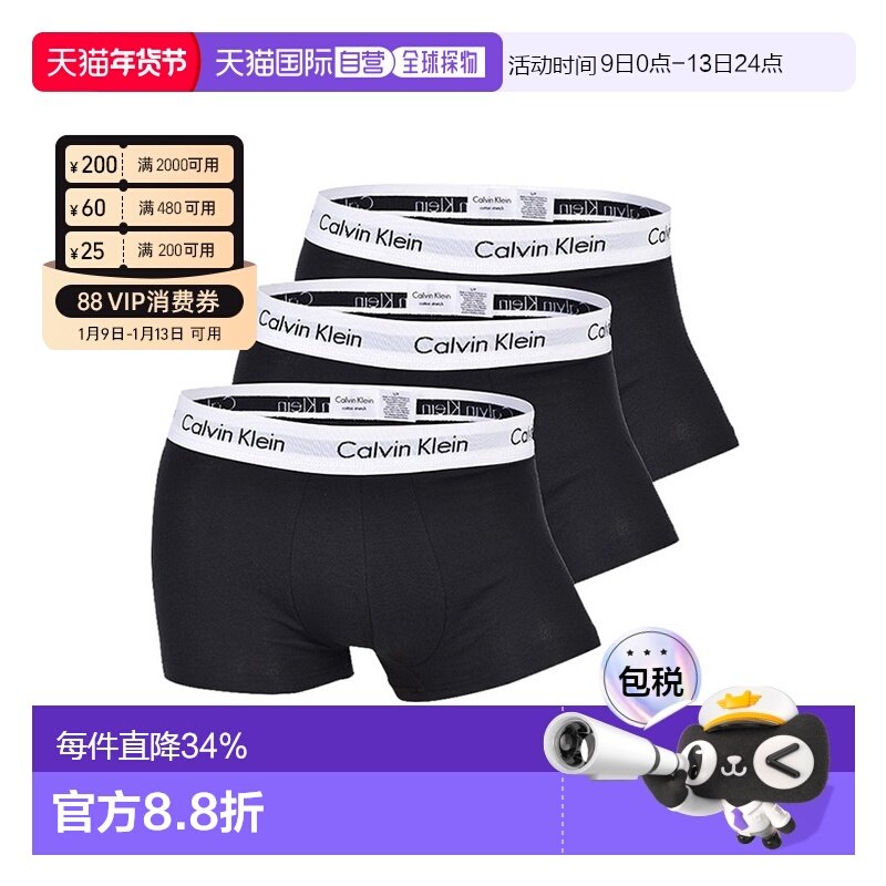 香港直邮CK男士内裤2025新款裤衩正品高档纯棉透气裤头U2664G-001