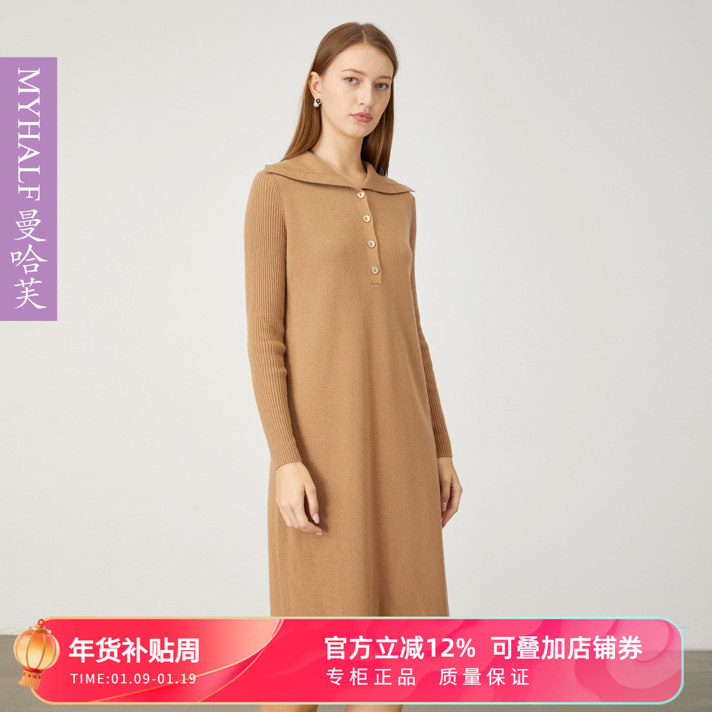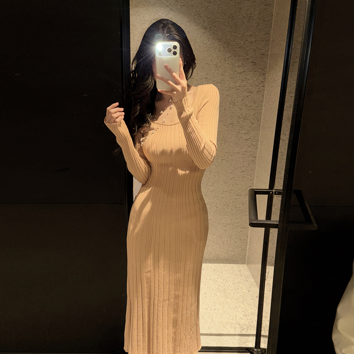 - 长款毛衣连衣裙冬