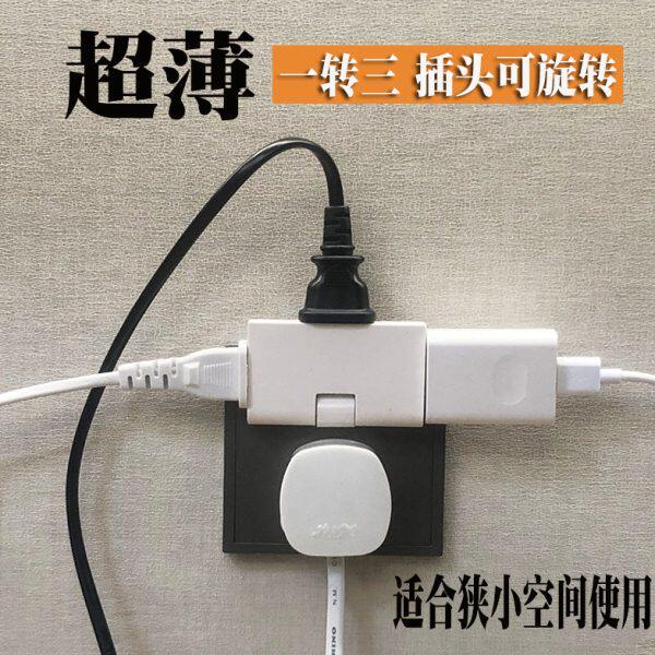家用3C超薄缝隙旋转插头一分三转换器二脚插座多功能电视柜靠墙排