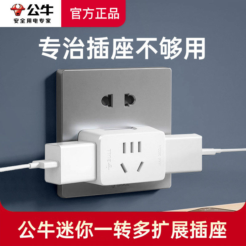 公牛插座多功能转移转换器床头无线一分三扩展宿舍用迷你超薄插头