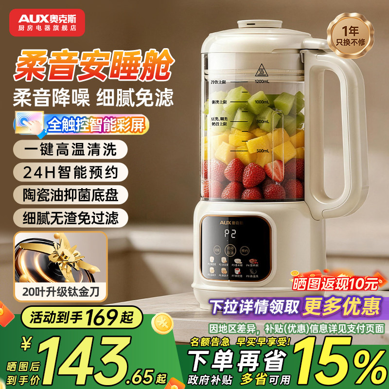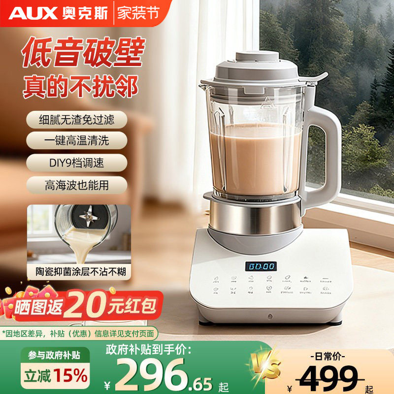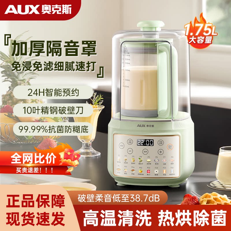 奥克斯破壁机轻音家用全自动智能渣免滤料理榨汁机豆浆机多功能无