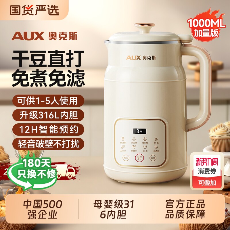 奥克斯豆浆机家用全自动免煮小型料理机正品破壁3-5人多功能辅食