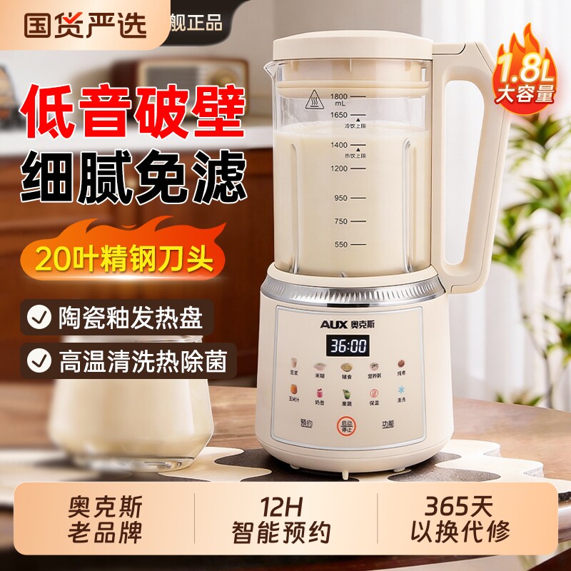 AUX新款/奥克斯破壁机豆浆机家用功能料理机大容量全自动免煮多