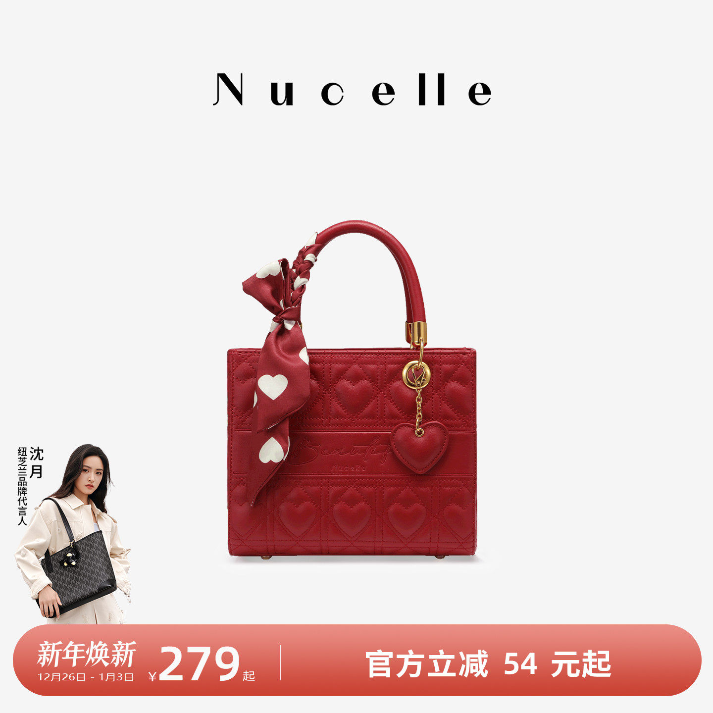 NU纽芝兰戴妃包包2025新款手提包单肩斜挎包红色新娘大容量婚包女