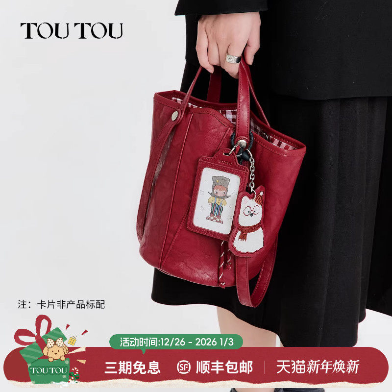 新娘礼物TOUTOU手提菜篮子水桶包大容量红色婚包通勤单肩斜挎包女