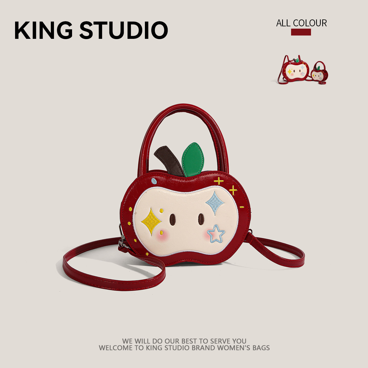 可爱刺绣红色苹果包包女2025新款小众百搭手提包大容量单肩斜挎包