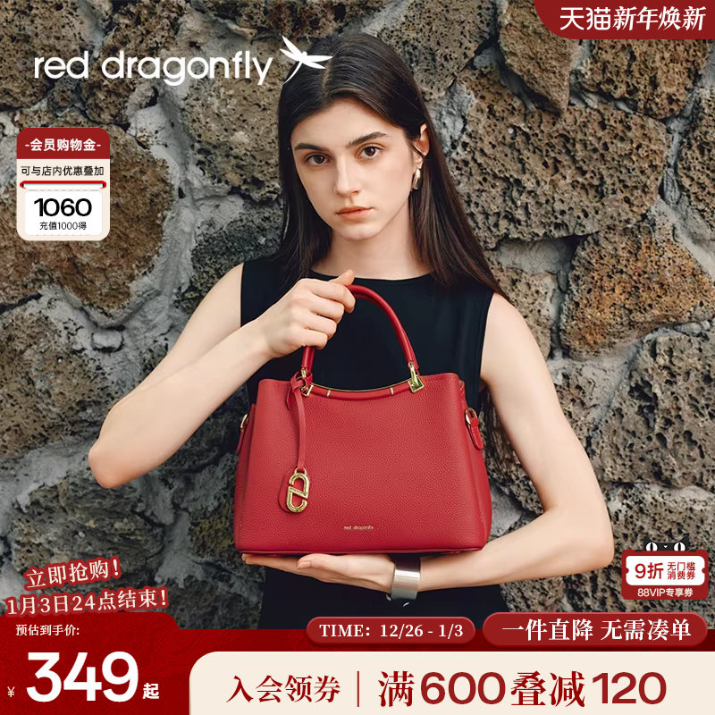 红蜻蜓手提婚包女新娘日常可用新年礼物真皮红色喜婆婆妈妈婚宴包