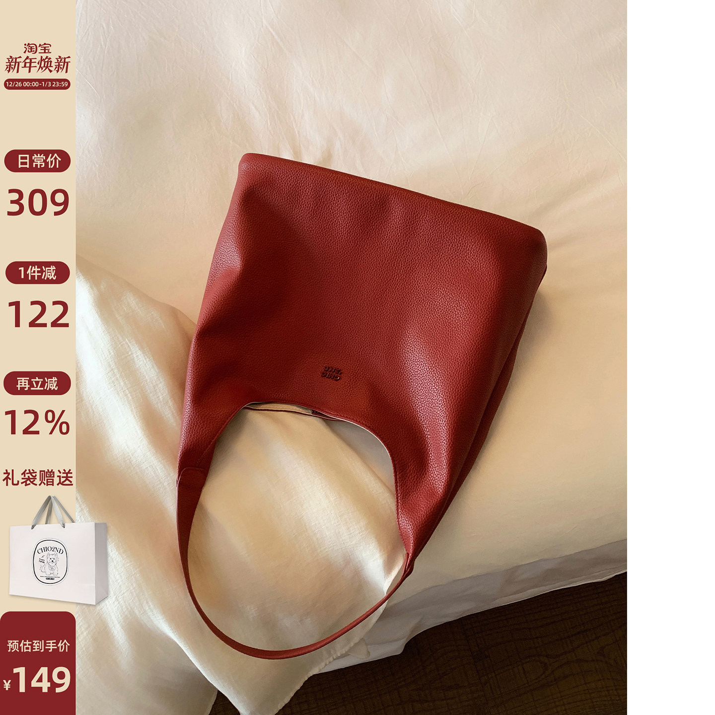 南风Chio2nd 店主自研秋冬丝光料托特包包女红色手提包单肩斜挎包