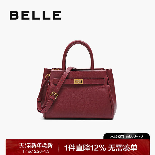 百丽包包女红色新娘婚包大容量手提包送礼盒妈妈包斜挎包X5348CX0