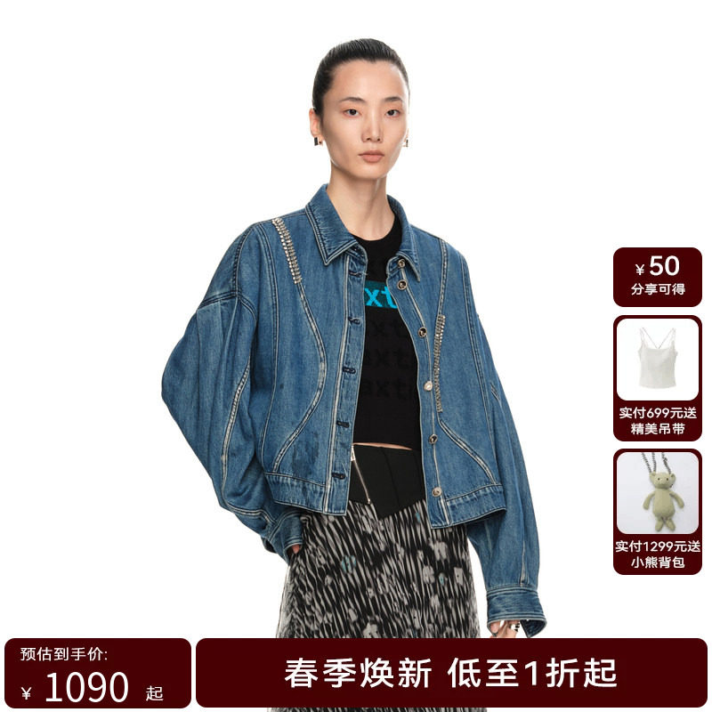 H·GENTEEL荷高新款春装女宽松廓形水钻装饰休闲牛仔外套