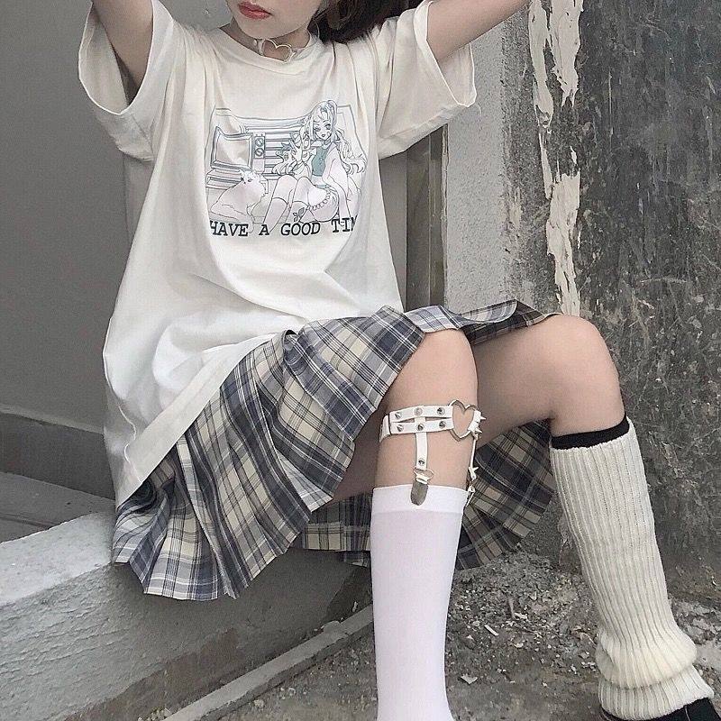 【两件套装】夏季学生日系休闲少女印花T恤百褶裙学院风套装/单件