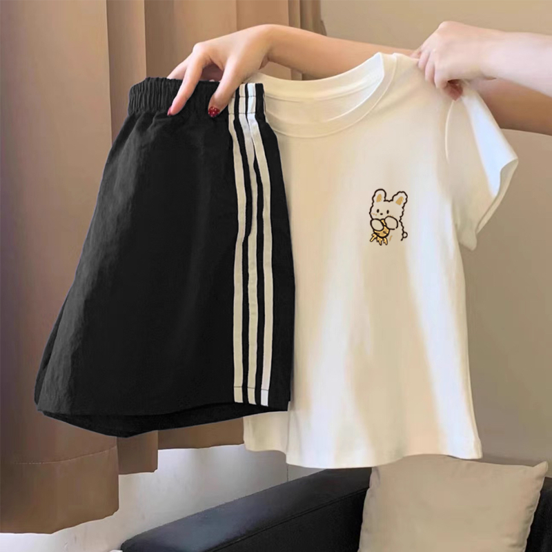 2025夏季宽松显瘦休闲运动套装韩版慵懒风学生短袖短裤两件套潮
