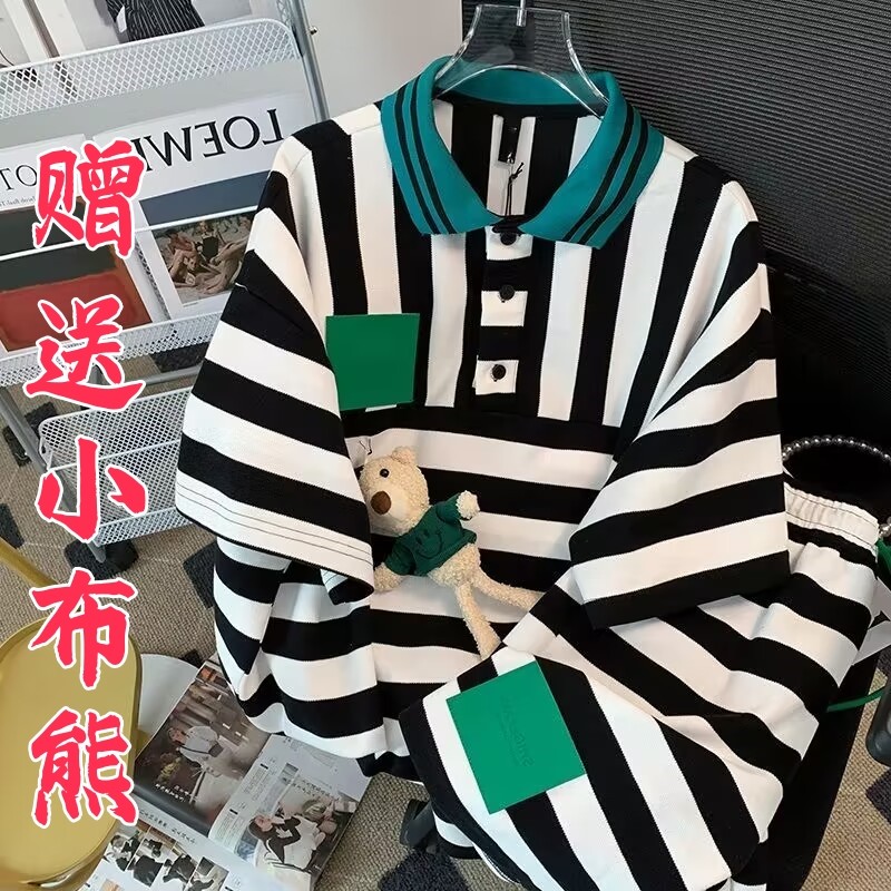 夏季学生短裤套装女2023条纹圆领宽松韩版短袖t恤初中生两件套潮