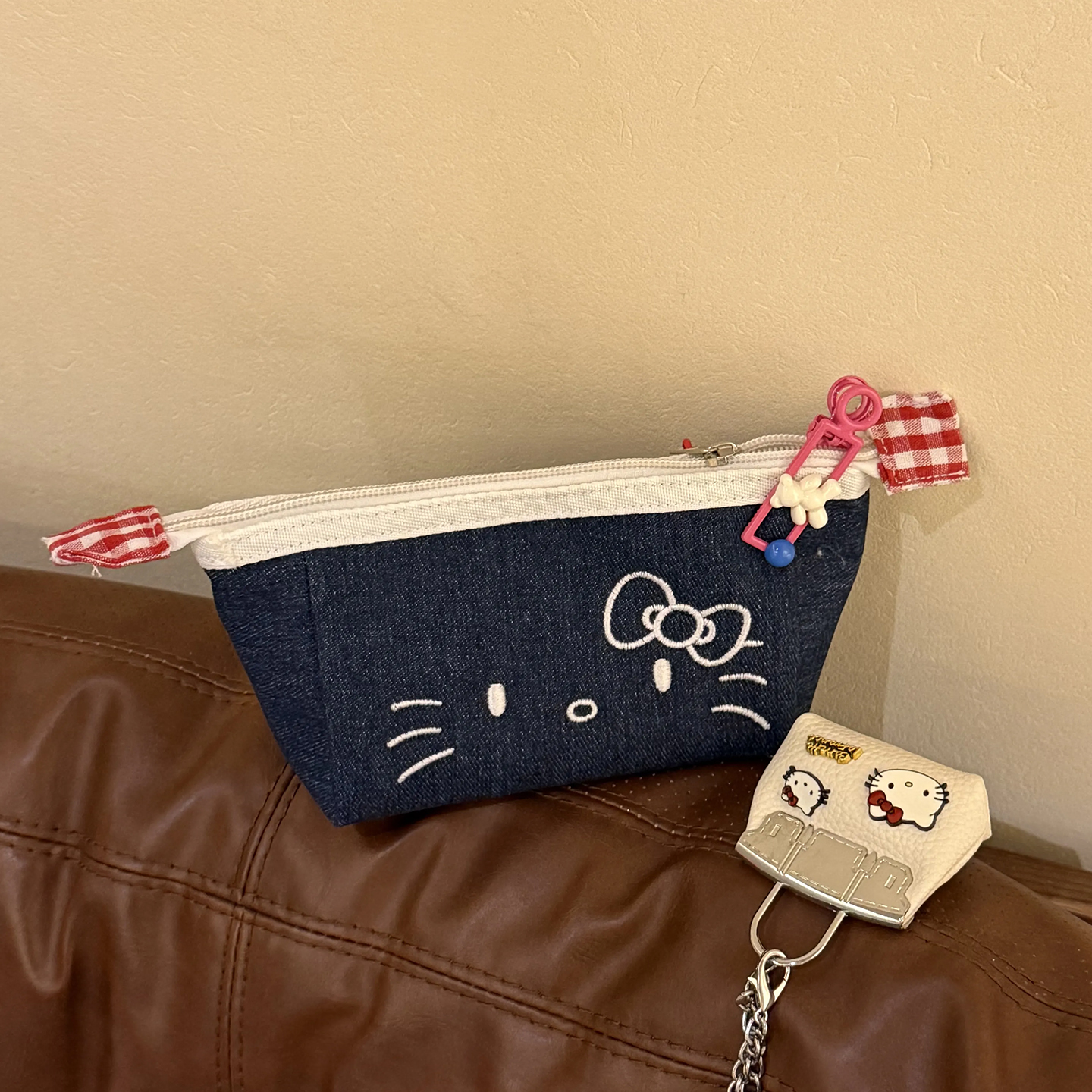 复古牛仔笔袋女生款高颜值文具袋2025新款卡通凯蒂猫收纳袋大容量