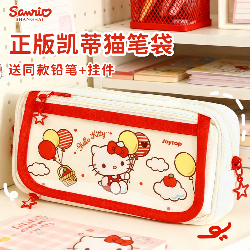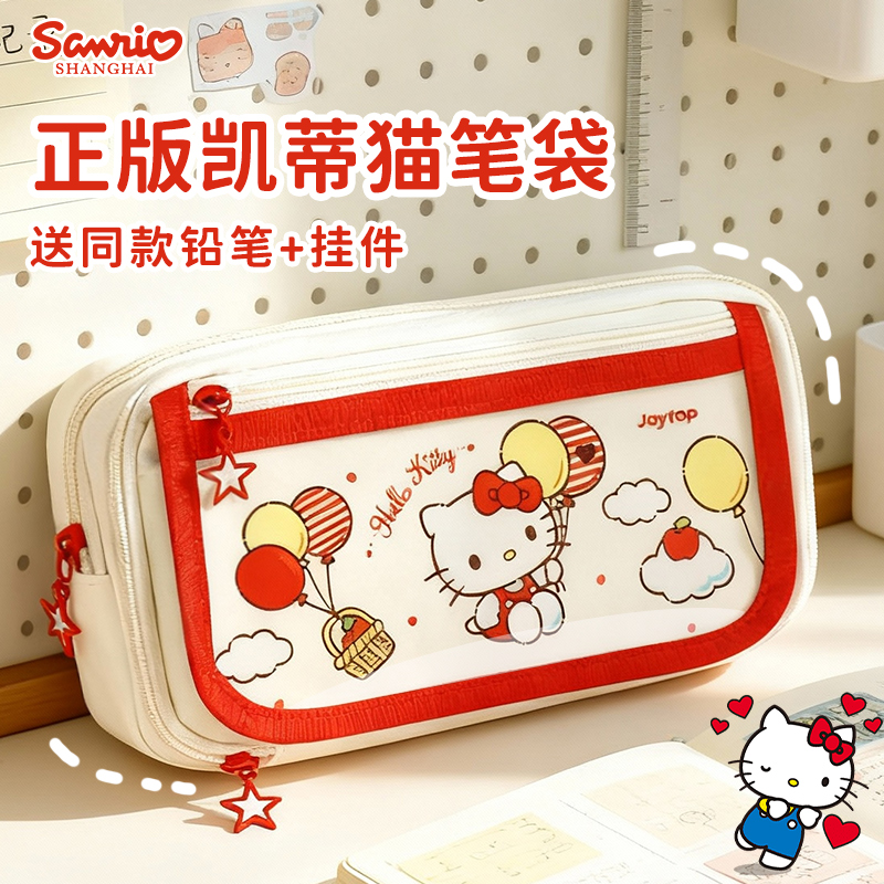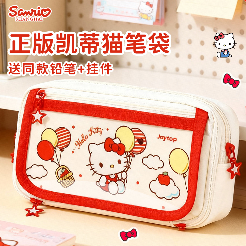 正版带标 三丽鸥hellokitty文具盒女凯蒂猫初中学生ins高颜值笔袋