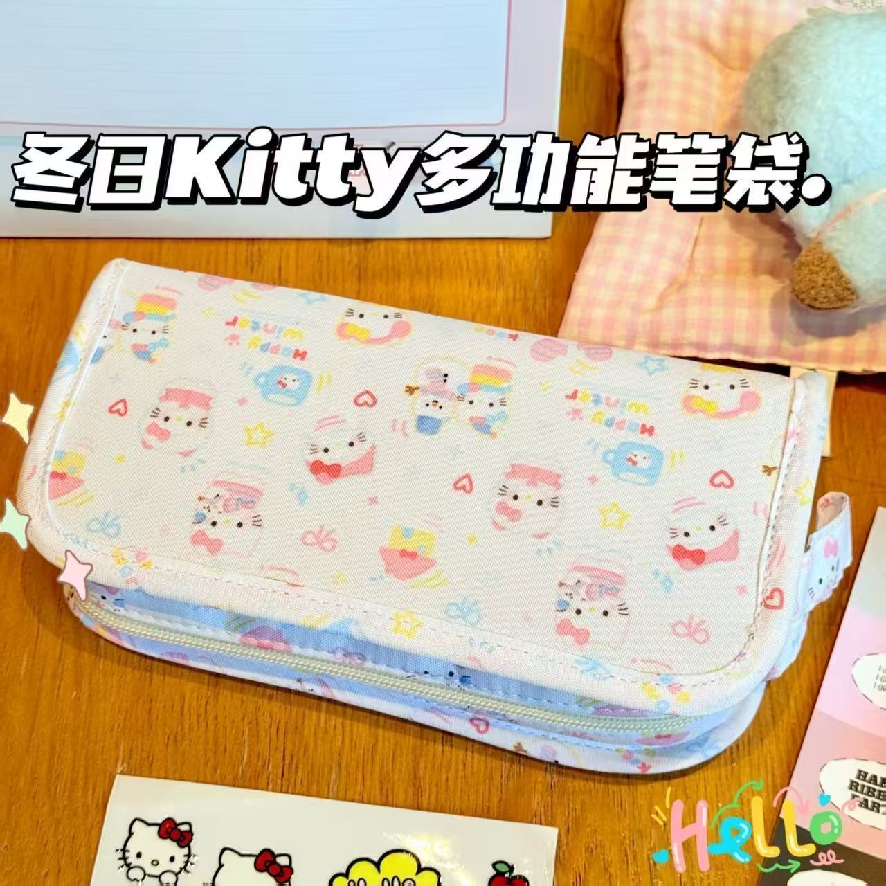 小红书同款凯蒂猫冬日痛包笔袋ins风大容量初高中生收纳袋HelloKitty学生卡通少女心文具盒小学生手提铅笔盒