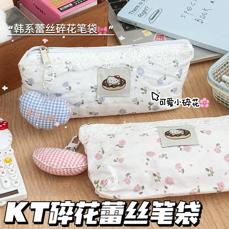 蕾丝凯蒂猫碎花笔袋2025新款超火高颜值ins风可爱大容量初中女文具盒小学生简约收纳铅笔盒小红书同款文具袋