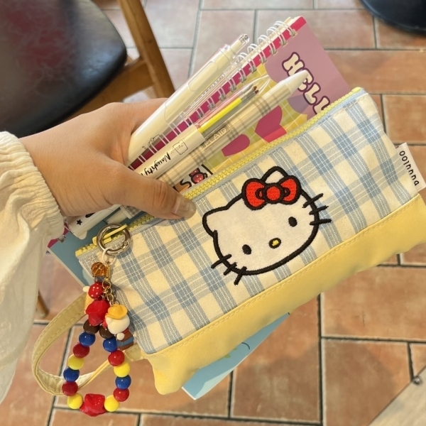 ins风新款可爱格子凯蒂猫笔袋高颜值大容量铅笔袋小红书同款铅笔盒可爱萌萌少女心收纳包化妆包学生文具盒