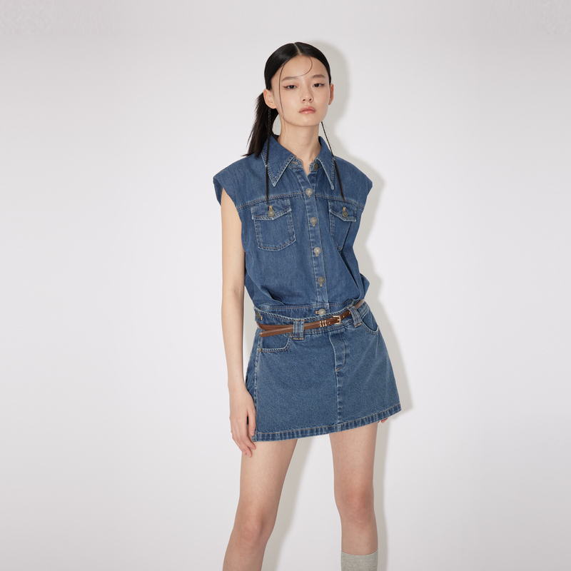 IIIVIVINIKO2025春新款工装风无袖收腰牛仔连衣裙女C511611186A