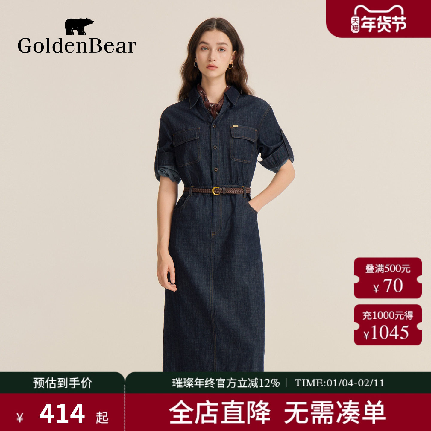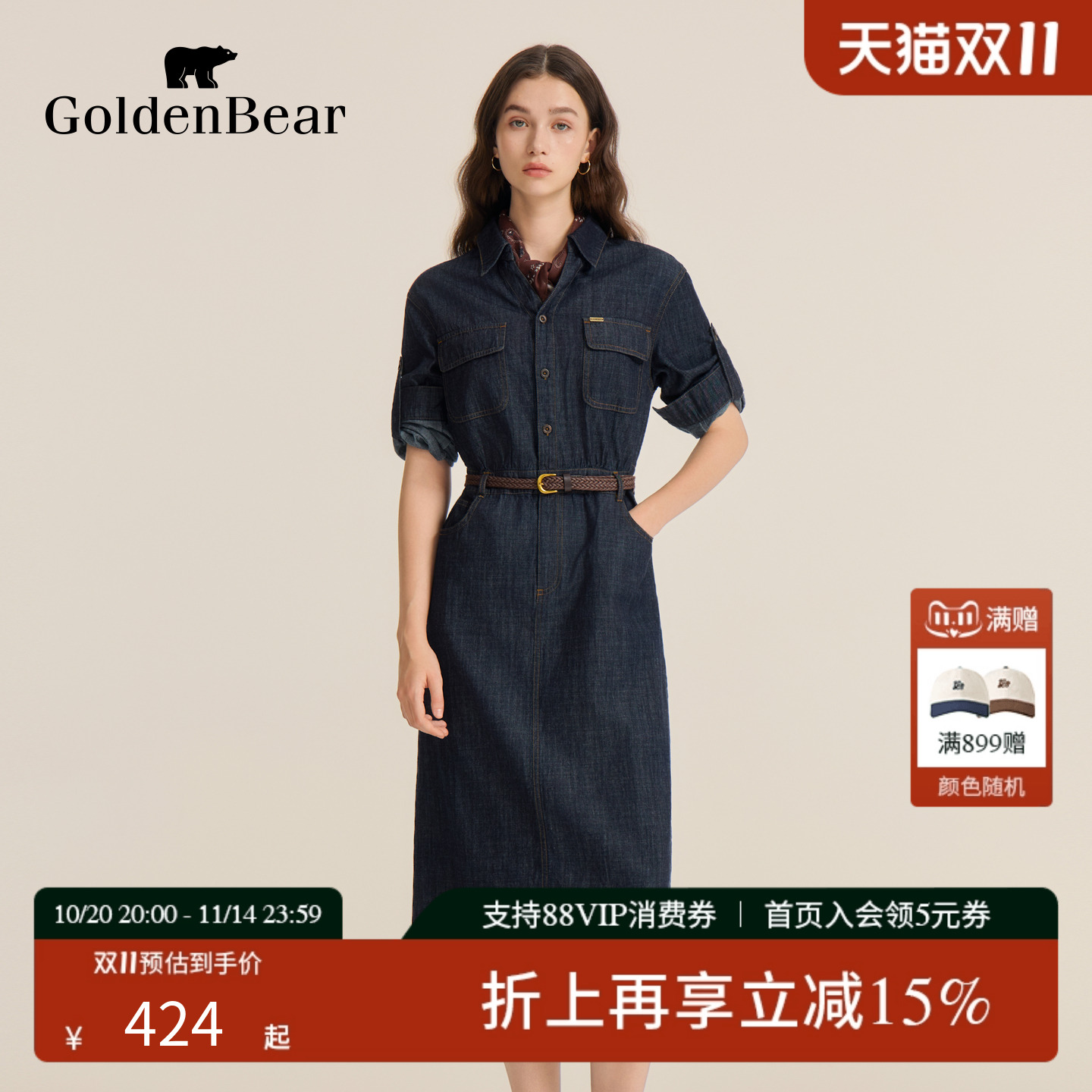 【秋季新品】GOLDEN BEAR/金熊 新款女士纯棉梭织收腰牛仔连衣裙